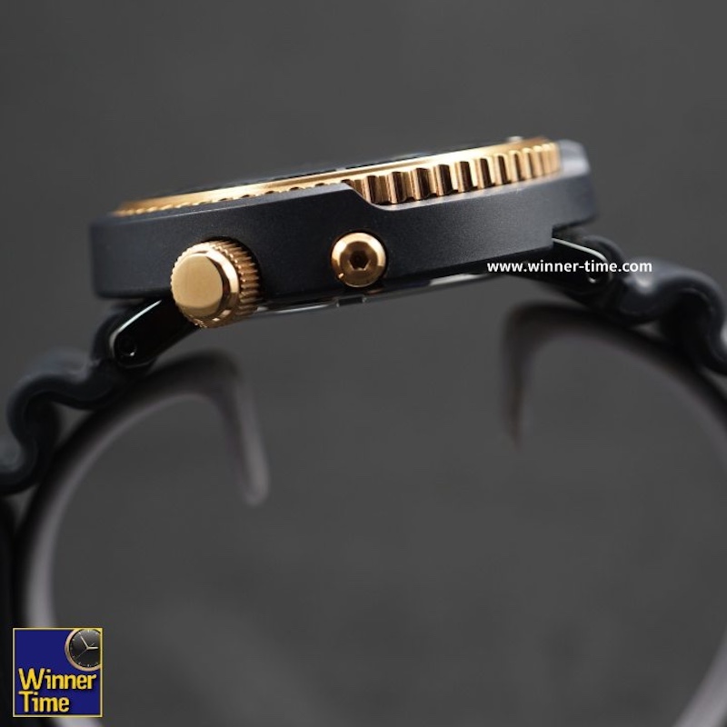 -ตัวเรือนสแตนเลสสตีล สายยางเรซิ่นสีดำ