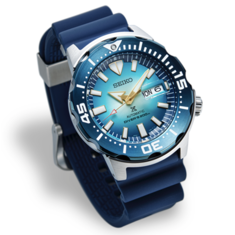 ทั้งความโดดเด่น ทางด้านภูมิทัศน์ และวัฒนธรรมที่น่าสนใจเกิดเป็นแรงบันดาลใจในการสร้างสรรค์นาฬิกาไซโก ภายใต้รหัส SRPG55K ที่เลือกใช้สีนำ้เงินและฟ้าครามของท้องทะเลทางภาคใต้มาเป็นสีหลักบนตัว เรือนท๊อปฮิตที่แฟนๆขนานนามว่า “มอนสเตอร์” หน้าปัดแบบซันเรย์มีการเล่นเหลือบแสงเงาของน้ำทะเลในวันฟ้าใสสะท้อนตา ชุดเข็มประดับสีทองเพิ่มความหรูหรา