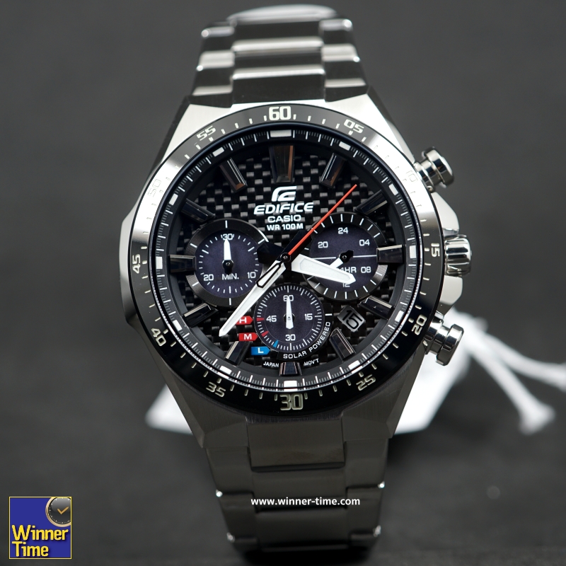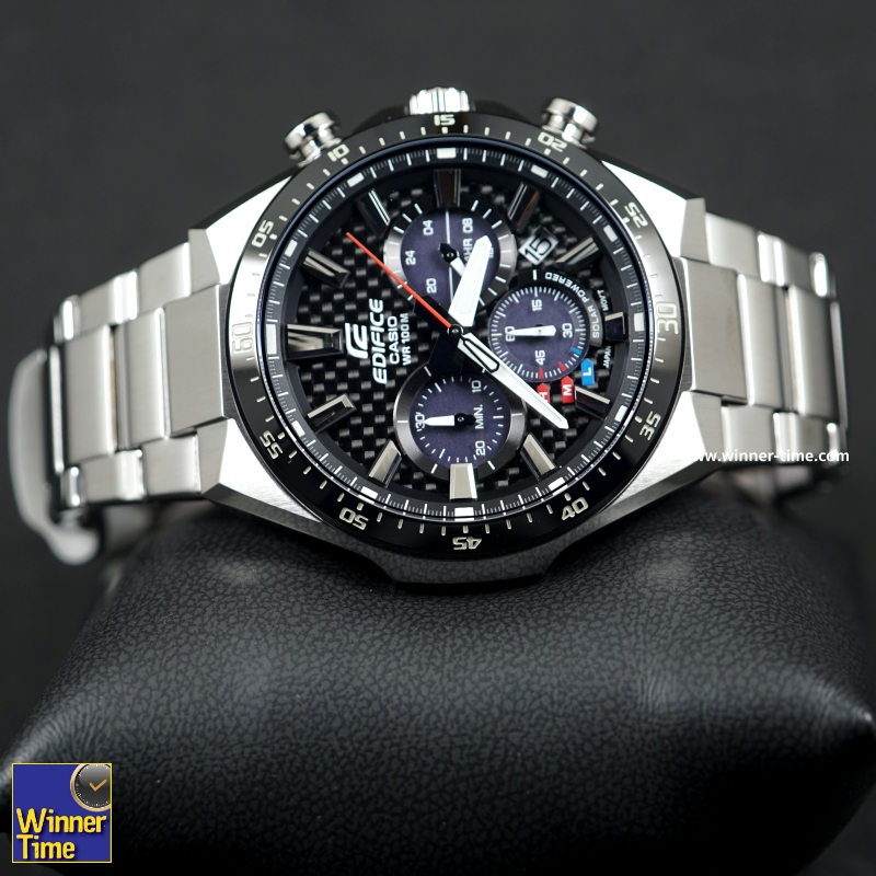 รุ่นนี้เป็นแบบโครโนกราฟพลังงานแสงอาทิตย์ล่าสุดจากหมวดผลิตภัณฑ์ EDIFICE ประสิทธิภาพสูง ดีไซน์แบบสปอร์ตของนาฬิกาแนวคิดกีฬายานยนต์นี้สร้างขึ้นจากคาร์บอนไฟเบอร์ซึ่งเป็นวัสดุสำคัญของรถแข่งในส่วนหน้า