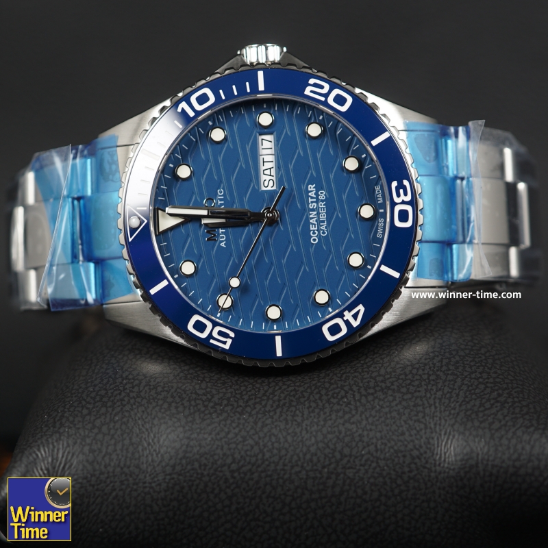 Mido กับวัสดุเซรามิค – หนึ่งในวัสดุซึ่งเป็นที่นิยมนำมาใช้ในการผลิตนาฬิกา – ขอบตัวเรือนหมุนทิศทางเดียวของ Ocean Star 200C. หน้าปัดออกแบบด้วยลวดลายพิเศษและเพิ่มสารเริงแสงเคลือบบนหลักชั่วโมงด้วย Super-Luminova® สีขาว . ความสามารถในการกันน้ำสูงสุดที่ 20 บาร์ เม็ดมะยมขันเกลียวพร้อมบ่ากันแระแทก ฝาหลังขันเกลียวสลักลายสัญลักษณ์ Ocean Star และตัวเครื่องออโตเมติคสำรองพลังงานสูงสุด 80 ชม.
