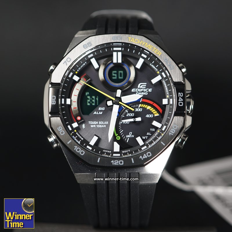 เชื่อมต่อกับสมาร์ทโฟนของคุณผ่าน Bluetooth® เพื่อการบอกเวลาที่แม่นยำไม่ว่าคุณจะอยู่ที่ไหน เข้าแอปเพื่อจัดการฟังก์ชันอย่างการเลือกเมืองจากรายการเวลารอบโลกได้อย่างง่ายดาย หน้าปัดย่อยขนาดใหญ่ที่ตำแหน่ง 4 นาฬิกาเป็นตัวระบุความเร็วที่แสดงอัตราความเร็วเฉลี่ยเมื่อจับเวลารอบสำหรับระยะทางที่ตั้งค่าไว้ ไฟ LED อัตโนมัติเต็มรูปแบบให้ความสว่างกับหน้าปัดและจอ LCD ได้ด้วยการเอียงข้อมือ Tough Solar ชาร์จนาฬิกาจากแสงอาทิตย์หรือแม้แต่แสงจากหลอดไฟฟลูออเรสเซนต์