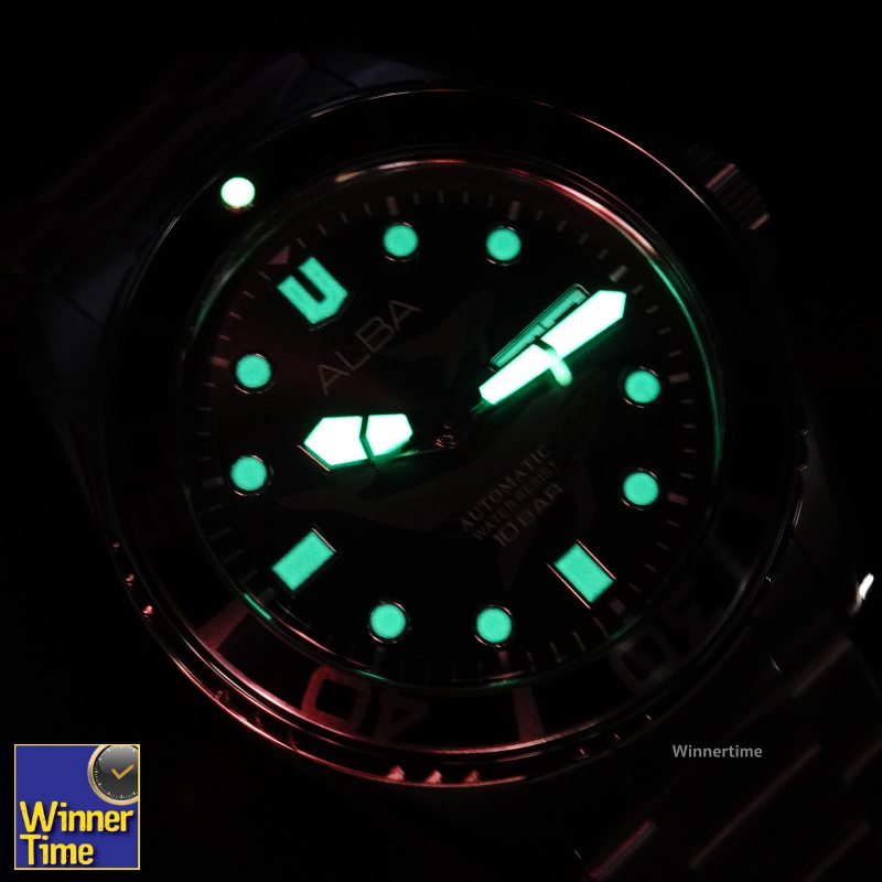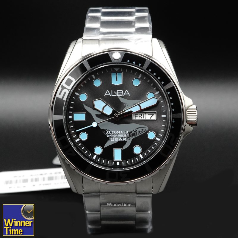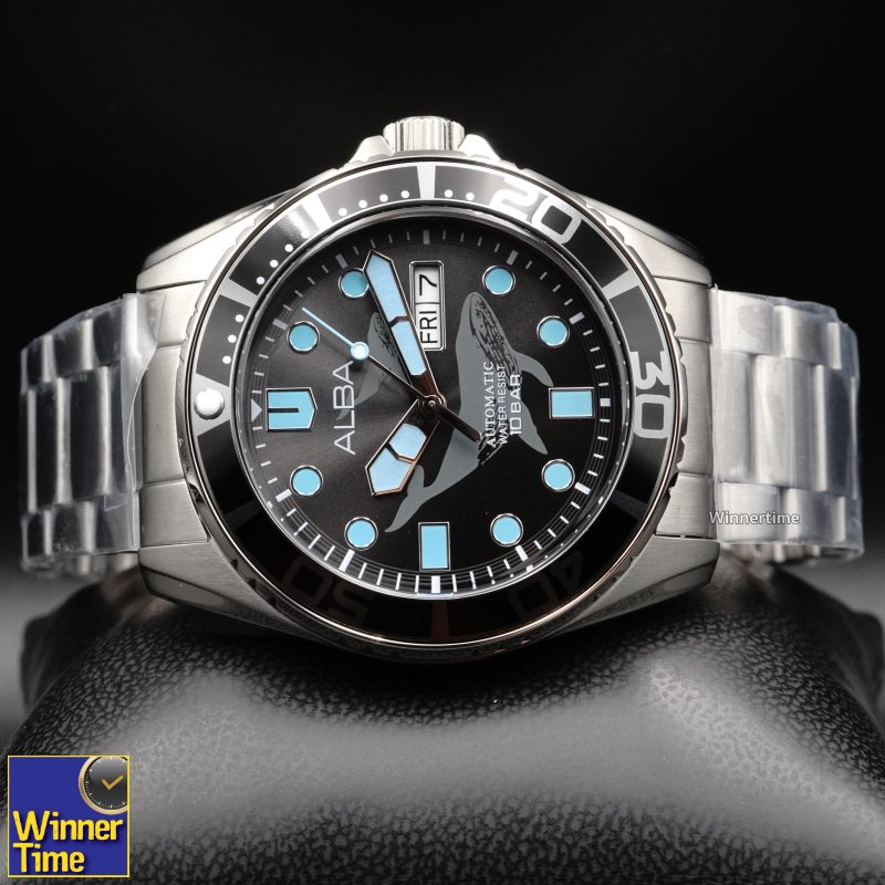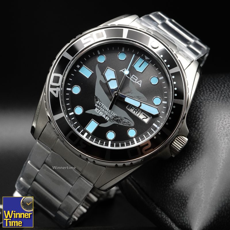 นาฬิกา ALBA Sport Automatic นาฬิกาเรือนนี้ได้รับแรงบัลดาลใจจากใต้ท้องทะเลสีน้ำเงินในมหาสมุทร ซึ่งปรากฎอยู่บนสีของหน้าปัดนาฬิกา ลายบนหน้าปัดนาฬิการังสรรค์มาจากปลาวาฬ