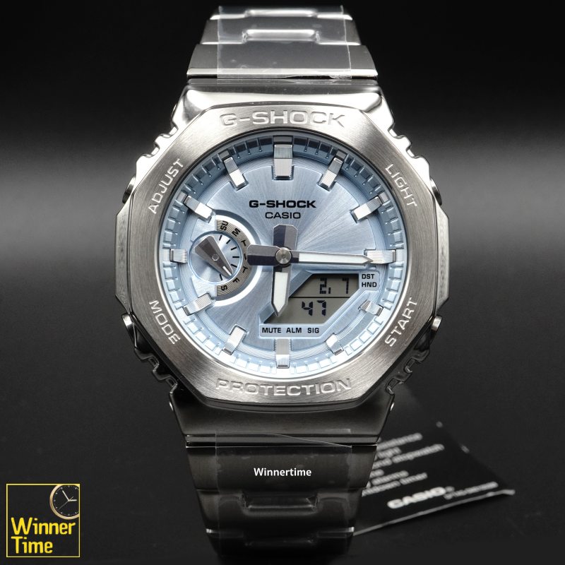รุ่น G-STEEL GM-2110D ใหม่ พร้อมกรอบโลหะอันโดดเด่น และสายเป็นตัวแทนของวิวัฒนาการล่าสุดของ GA-2100 อันเป็นเอกลักษณ์ กรอบสเตนเลสสตีลทรงแปดเหลี่ยมที่สร้างขึ้นอย่างพิถีพิถัน