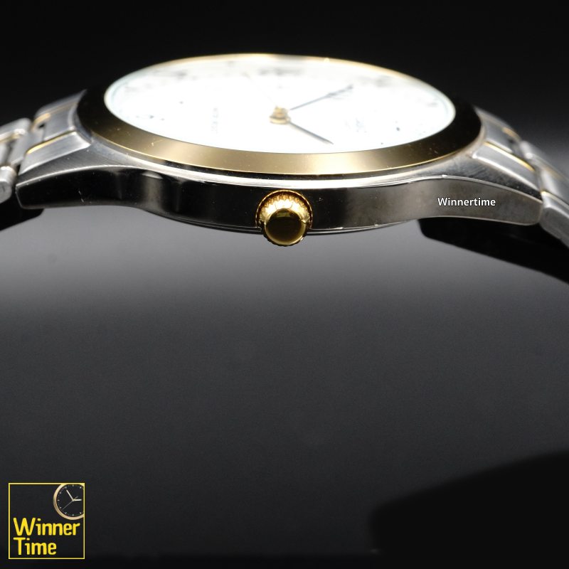 นาฬิกา Casio MTP-1128G-7B เป็นนาฬิกาอะนาล็อกสำหรับผู้ชายในรุ่นมาตรฐานของ Casio ที่มีดีไซน์แบบทูโทนคลาสสิก ตัวเรือนและสายเป็นสเตนเลสสตีลสีเงินสลับทอง หน้าปัดสีขาว พร้อมเข็มนาฬิกาสีทอง
